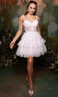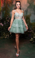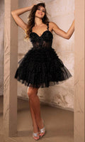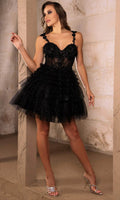 Turn heads instantly when you wear this May Queen MQ2097 cocktail dress. This dress showcases an alluring sweetheart neckline on fitted bodice, also featuring spaghetti straps for added support. It also reveals amid-open back that is secured with zipper for a polished finish. The top is beautifully crafted with floral embroidery and beads, while the A-line skirt displays ruffles and glittery effects. Be the life of the party in this May Queen MQ2097 masterpiece. Models are wearing Black, Champagne, Sage, Silver, and White colors.