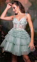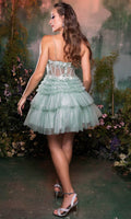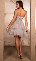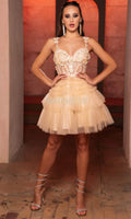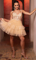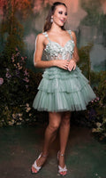| Details: | Floral Embroidery, Bead, Spaghetti Straps, Sleeveless, Fitted, Illusion, Boning, Glitter, Ruffle, Mid-Thigh, Mid-Open Back, Back Zipper |