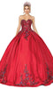Add some sparkle to your next event in this Dancing Queen 1576 gown. This statement-making dress features an ornate lace applique and rhinestone embellished bodice, as well as a sweetheart neckline and cap sleeves. A corset back allows for the most flattering fit, while a voluminous ballgown skirt with a scalloped hem completes the look.