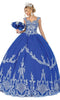 You will steal the spotlight in this sensational strapless ballgown. A magnificent floral-embroidered sequined bodice is supported by a corseted waistline and flowing skirt. Dance the night away in this Dancing Queen creation