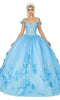 A spotlight shines on you in this ethereal gown by Dancing Queen. The off-the-shoulder neckline is perfect for wearing off-the-shoulder or strapless bras, and the lace up back offers an adjustable fit for comfort. The embroidery and scalloped hem finish add a touch of drama to your look.