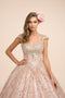 The floor-length off-shoulder ball gown comes with a sweetheart neckline and an appealing open back. the back if this ball laces up. This blush ball gown will make you blush with the compliments that you will get while wearing it.