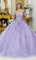 Experience a fresh take on timeless beauty with the exquisite Dancing Queen 5012. Featuring beautifully placed 3D floral applique, embroidery and subtle glitter accents, this ballgown brings a romantic aura. The sheer corset bodice enhances your figure while the off-shoulder sleeves with sheer long cape complete the ethereal look. Flowing into a full, princess-worthy skirt from a Basque waistline, the Dancing Queen 5012 is perfect for those seeking a magical gown that turns heads and creates lasting impressions. Model is wearing Bahama/Lilac color.