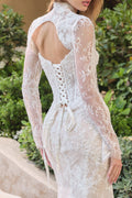 Make a stunning entrance in the Ladivine WL071, a strapless bridal masterpiece designed to celebrate your curves. This enchanting gown features an illusion sweetheart bodice with corset boning, adorned with intricate beaded lace and sequined detailing that flatters your silhouette beautifully. The fitted skirt flows into a graceful sweep train, while the removable long-sleeve bolero jacket adds sophistication and versatility for any moment of your special day. With its dramatic lace-up back, luxurious blend of lace and tulle, and impeccable tailoring, this gown delivers the couture elegance every bride deserves. Available in sizes 4-18, it's the perfect choice for weddings, galas, and unforgettable celebrations.