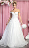 May Queen RQ7892: Look stunning in this long-sleeved trumpet gown featuring an off-shoulder neckline, lace appliques, and a sheer waistband. Perfect for various occasions.