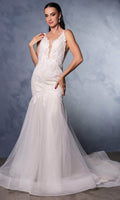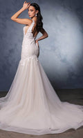 Expect stunned stares with this May Queen RQ8181 gown, a true masterpiece of elegance and sophistication. This stunning dress features a sleeveless, fitted bodice with a captivating plunging V-neckline accented with a sheer insert, adding a touch of allure. The side mesh panels enhance the modern design, while the V-shaped back offers a dramatic and elegant look. The floor-length skirt flows gracefully in a mermaid silhouette, creating a sleek and refined appearance, and ends with a train for added grace. May Queen RQ8181 combines timeless elegance with contemporary charm, ensuring you stand out with confidence and poise. Model is wearing Ivory/Nude color.