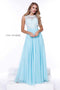 FORMAL A-LINE LONG PROM GOWN CHIFFON MATERIAL BATEAU NECKLINE EMBELLISHED BY AN ILLUSION MID-U-BACK ADORNED WITH SILVER BEADS AROUND THE EDGES OF THE TOP.