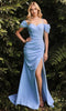 Look like a gorgeous siren when you slip on this Cinderella Divine 7487 creation. Exquisitely defined with a fitted silhouette, this satin gown features a cowl neckline with adjustable straps. Crafted with a draped sash that can be tied to a bow at the back, the sheath skirt seamlessly flows into a train. Give off an ethereally feminine flair in this Cinderella Divine masterpiece.