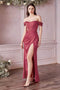 Sparkle in beauty wearing this strikingly figure flattering mermaid gown from Cinderella Divine CR844. This glitter embellished evening gown impresses with an illusion plunging V neck and sleeveless fitted bodice and shows a mid-open back with triple slender strap support Flaunting a thigh-high leg slit and finishing with a horsehair ribbon hem this jazzy piece will have you sparkling all throughout the event. Show up in this Cinderella Divine that has the perfect amount of glitz and glamour and get ready to mesmerize the night!