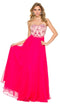 FLOOR LENGTH LACE BODICE GOWN STYLE GORGEOUSLY EMBELLISHED WITH RHINESTONE AND WHITE SCROLL LACE ON A SLEEVELESS BODICE LAYERED CHIFFON SKIRT FULL-LENGTH HEMLINE