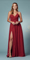 Complement your next black tie gala with this elegant Nox Anabel E1035 creation. Exquisitely tailored, it offers a double crisscross back and a v-neckline on an empire cut silhouette. Detailed with gathered ruching along the bodice, the sheath skirt is finished with a slit as it cascades into a sweep train. Gather your trusted attendants to capture this momentous fashion event in style.