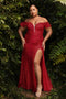 Complete your glamorous renaissance look in Cinderella Divine's plus size long satin fitted dress with a corset back by 7484C. It features an adjustable corset tie at the back for a personalized fit and detachable off-the-shoulder straps for a carefree appeal.