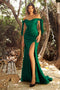 Dance the night away in this plus size long off the shoulder fitted dress by Cinderella Divine CD943C from the Curve Collection. Cut from a luxe jersey, this dress is artfully tucked and ruched to accentuate your curves and features an alluring off-the-shoulder neckline framed by elongated sleeve ties and the floor pooling fishtail hemline defined by a dramatic front slit so you can work the room with ease.