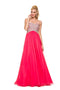 LONG STRAPLESS PROM CHIFFON DRESS ADORNED WITH BEAUTIFUL BEADS ON THE TOP AREA FLOWER LIKE EMBROIDERY AND A THIN SATIN BELT AS AN EXTRA COMPLIMENT.