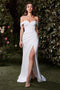 Be the life of the party in this lace applique A-line bridal gown from Ladivine by Cinderella Divine WL035. Show off your fun and flirty side with its stylish slit skirt and short sleeves.