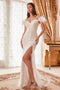 Create enduring memories in this Ladivine by Cinderella Divine 7492W gown, a long off-the-shoulder corset dress with a fitted slit skirt. Crafted from luxurious satin, the meticulously structured boned bodice is elegantly adorned with a cowl neckline. The option of delicate thin straps offers added support to enhance the off-the-shoulder allure. A touch of sophistication is added with a discreet leg slit, completing the ensemble.