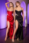 Details: Make an unforgettable entrance in this luxurious satin gown by Ladivine. The sleeveless illusion sweetheart bodice with thin straps beautifully highlights your figure, while the open back with a zipper closure adds a touch of sophistication. The floor-length fitted skirt with a sweep train and side leg slit completes the look with elegance and movement.