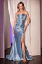 Get ready to turn heads in this mesmerizing Applique Satin Strapless Slit Gown from Ladivine by Cinderella Divine! Featuring a lace-appliqued corset bodice and a flattering fit-and-flare silhouette, this dress exudes timeless elegance. Perfect for prom, formal events, and black-tie occasions, it's sure to make you feel like a true queen.