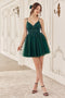 Dazzle the room in this bead embroidered short sleeveless dress with A-line glitter skirt from Ladivine by Cinderella Divine CY022. Step into the spotlight in this enchanting short A-line dress - perfect for Damas or homecoming! The layered glitter tulle skirt adds a touch of sparkle and whimsy, ensuring you shine with every step you take. The embellished lace bodice steals the show with its intricate detailing and plunging V-neckline, exuding elegance and allure. Beaded thin straps delicately adorn your shoulders, adding a hint of glamour to the ensemble. And with a lace-up corset back closure, you can customize the fit to perfection while adding a touch of romance to your look.