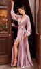 Have all eyes on you in this stellar Cinderella Divine 7489 creation. Designed with spaghetti strap trailing into a draped satin silhouette, this gown features a plunging v-neckline with a sheer inset. Accented with ruching on a v-open back, the high slit skirt streams into a full length hemline. Take your style factor into a fantastic level in this Cinderella Divine masterpiece.
