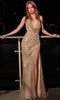 Sparkle in beauty wearing this strikingly figure flattering mermaid gown from Cinderella Divine CR844. This glitter embellished evening gown impresses with an illusion plunging V neck and sleeveless fitted bodice and shows a mid-open back with triple slender strap support Flaunting a thigh-high leg slit and finishing with a horsehair ribbon hem this jazzy piece will have you sparkling all throughout the event. Show up in this Cinderella Divine that has the perfect amount of glitz and glamour and get ready to mesmerize the night!