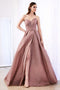 Be the center of attention in this long glittered lace dress with open back by Cinderella Divine C32.