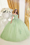 Indulge in the joy of spinning gracefully while clad in this adorned lace applique long off-the-shoulder dress with long sleeves and an A-line skirt, hailing from Ladivine by Cinderella Divine with the reference number 15706. This captivating ball gown, featuring an off-the-shoulder design and elegant long sleeves, is a masterpiece that will transform you into the embodiment of a quinceañera princess. The artfully crafted lace and beaded appliques infuse the bodice with just the right amount of luminosity. Elevating the dress's appeal, the three-dimensional floral appliques bestow upon it a distinctive and artistic touch. And if that weren't enough to command attention, the dress boasts a multi-layered tulle full skirt, complete with a tiered train detail adorned with intricate lace appliques. This amalgamation embraces a traditional essence, ensuring that all eyes remain fixed on your resplendent presence.