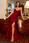 Capture unforgettable moments in this satin long off-shoulder gown with a fitted slit skirt from Ladivine by Cinderella Divine CD790. The fitted design boasts a sweet off-the-shoulder neckline, flattering pleated waist, and a chic leg slit. Made with stretch spandex satin, it accentuates your curves while allowing for effortless movement. Perfect for bridesmaids, wedding guests, or any fancy affair, this dress combines timeless charm with a contemporary fit.