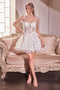 Be the life of the party in this lace applique A-line bridal gown from Ladivine by Cinderella Divine WL035. Show off your fun and flirty side with its stylish slit skirt and short sleeves.