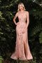 Lose yourself in the off-white satin glow of Cinderella Divine 7487W. You’ll feel beautiful and feminine in this floor-length gown that features a draped neckline and is adorned with an adjustable bow sash at the waist. The soft satin fabric gives this long-fitted gown a light, airy quality that can be dressed up or down effortlessly.