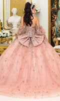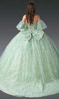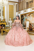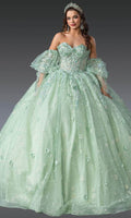 | Details: | Strapless, Detachable Long Puff Sleeves, Illusion Corset Bodice, 3D Floral Appliques, Embroidery, Beaded, Bow Accent, Lace-Up Back |