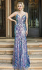 Make a statement at the next prom or homecoming dance with this beautiful Dancing Queen evening dress. Showcasing a plunging V-neckline in a fitted and appliqued bodice, this prom dress also displays beaded waist. Revealing a sheath silhouette skirt with slit to create an elegant look, this gown also shows a mid-open back to complete the ensemble. You'll love making a memorable entrance in this creation from Dancing Queen