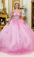 Enchant your audience with the refined beauty of the Dancing Queen 5000, perfect for turning dreams into reality. This gown features off shoulder sleeves and a sweetheart neckline, enhanced by floral applique, embroidery and beaded that adds texture and depth. A glittered ballgown skirt sparkles under the light, while the illusion corset bodice highlights your curves. The lace up back ensures both comfort and a flawless fit. Designed for grand occasions, the Dancing Queen 5000 guarantees you will exude grace and charm. Models are wearing Pink, and Lilac colors.