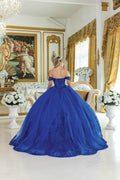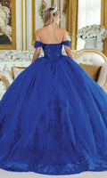 Step into royalty on your special day with the Dancing Queen 5003, a gown crafted for elegance and splendor. The draped off-shoulder sleeves an sweetheart neckline elegantly frames the collarbones, while intricate embroidery flows gracefully from the bodice down to the hem of the skirt. This voluminous ballgown silhouette ensures you will glide effortlessly across the room. The attention to detail in every stitch and applique makes this gown a standout choice. Wear the Dancing Queen 5003 for a timeless, statement-making ensemble on your big day. Model is wearing Royal Blue color.