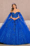 You'll love twirling around in this 3D butterfly long off the shoulder cape sleeve dress with A-line skirt by Elizabeth K GL3110.