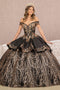 Dance the night away in this 3D floral long off the shoulder feather dress with A-line skirt by Elizabeth K GL3102. This dress features an off-shoulder bodice decorated with detachable feather embellishments. Look gorgeous in sparkly details and 3-D flowers.