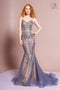 - Fitted Metallic Glitter Ombre Long Dress with Embroidered Bodice