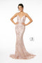 Look unforgettable in this glitter embellished long fitted illusion V-neck dress with side slit by Elizabeth K GL1844. Affordably priced at $190, this gown is perfect for any formal event and will keep you on budget!