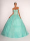 Create lasting memories in this long glitter dress with beaded illusion sweetheart bodice by Elizabeth K GL2600 during your Quinceanera party or for any formal event. This beautiful sleeveless gown features a sheer sweetheart neckline embellished with feminine beaded design, a flirty open back with straps, the glitter pattern and embroidered lace appliques on the floor length skirt makes a bold statement, gorgeous sweep train, and a lace-up corset back. This dress comes with a matching bolero jacket.