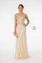 Enjoy your evening in this mid-sleeved long bead embroidered dress with illusion bodice by Elizabeth K GL2973.