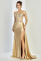 Dive into sophistication with Adora Design's 3266 prom dress. This curve-hugging frock boasts sparkling glitter appliqué and intricate lace accents, creating a mesmerizing, dreamy aesthetic. The corset bodice and spaghetti straps flatter your frame, while the daring thigh-high slit adds a touch of daring. Perfect for prom, galas, or any fancy affair where you want to exude confidence and sparkle.
