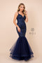 Dance the night away in this long sleeveless V-neck mermaid dress with beaded embroidery by Nox Anabel H402.