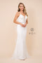 Light up the room in this long lace bodice fitted dress with metallic skirt by Nox Anabel E373.