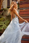 Indulge in the luxurious elegance of this white lace overskirt gown by Nox Anabel F485W. The exquisite hand-beaded floral embellishments and attention to detail make this long dress with a deep V-neck and A-line overskirt a statement piece.