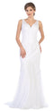 What better way to celebrate your big day than with a gorgeous long wedding dress? The embellished lace bodice of this bridal gown is perfect for the romantic bride. Made of chiffon fabric. With its soft cup inserts that help keep you comfortable, this dress is just right for your special day!