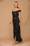 Dazzling long gown featuring a long sleeve high neckline with cowl back and made of sequins material. Perfect for for formal, evening party or any special occasion.