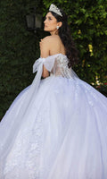 Walk the red carpet in style wearing this enchanting May Queen LK263 ballgown. This gown exhibits an endearing off-shoulder neckline with bow feature on the straps. It also showcases sheer sides as well as mid-open back that is secured by lace for a graceful finish. The top is wonderfully designed with floral embroidery and beads, while the skirt is adorned with glitters and a majestic cathedral train. Get on the best-dressed lists in this lavish May Queen LK263 masterpiece. Models are wearing Pink, and White colors.