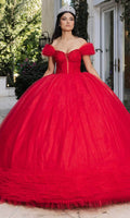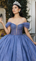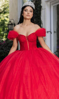 Be ready to catch everyones eyes in this May Queen LK266 ballgown. Everyone will be in awe when they see you wearing this gown which showcases an endearing off-shoulder neckline on a ruched bodice. It also reveals a mid-open back that is enclosed with lace for a graceful finish. Ruffle designs on the sleeves and hemline further elevates the overall appeal of this attire. The top is beautifully designed with crystal beads and boning details, while the skirt exhibits its shimmering glitters. Enter the hall with grace and beauty in this May Queen LK266 masterpiece. Models are wearing Dusty Blue, and Red colors.