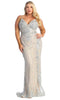 Turn heads in the elegant May Queen RQ7624 evening gown. It features sheer long sleeves, a deep scalloped V-neckline with a sheer inset at the mid-bust, and a fitted bodice adorned with lace appliques. A shiny belt accentuates the waist, and the open back adds a unique detail. The trumpet skirt flares at the bottom, creating a stunning silhouette, while the sweep train adds an extra touch of elegance. This May Queen design will surely showcase your elegant and classy style at your next formal occasion.