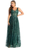 May Queen RQ7936: Radiate in pure elegance with this evening dress. It is tailored on a stretch fabric and features an off-the-shoulder sweetheart neckline defined with boning structure on a fitted bodice. Trailing sequins glamorize the whole ensemble, and the skirt displays a trumpet silhouette created by tulle godets that flare to a modest train finish.